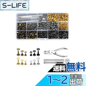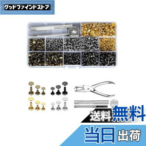 ズ (6*6mm/8*8mm/8*12mm)各30組;3種色(ゴールド/シルバー/ガンメタル);工具*3(穴あけポンチ*1/打ち棒*1/打ち台*1);収納ケース*1(ケースサイズ:17.8×10.5×2.35cm)br【...
