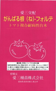 吸肥力が強く、栽培適応性が高い夏秋用台木!【特長】●トマトモザイクウイルス(Tm-2a型)、青枯病(B)、萎凋病レース1(F1)およびレース2(F2)、半身萎凋病(V)、サツマイモネコブ線虫(N)に複合耐病虫性のF1台木。●吸肥力が強く、