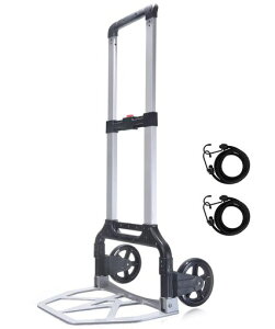キャリーカート ハンドキャリー アルミ 台車 運搬キャリー 折りたたみ 2輪キャリーカート 高さ調節 軽量 静音 耐荷重70KG キャンプ アウトドア 引っ越し 災害時 買い物 旅行 固定ロープ2本付き...