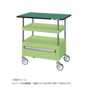 【組立式】 【組立費別途】 《商品説明》●ボルトレスで組立簡単。棚板を逆さにするだけで、皿型・フラット型と組み替えることができます。油に強く床面に跡がつきにくいナイロンウレタン車を採用。簡易作業も可能な天板付です。●グ
