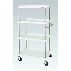 ●外寸:W900×D600×H1200mm●均等耐荷重:150kg●本体色:パールホワイト●質量:27kg●キャスター:100φナイロンウレタン車●段数:3●支柱:クロムメッキ25.4φ、棚板調整ピッチ50mm●改正RoHS10物質対応