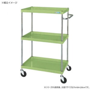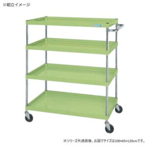 【組立式】 【組立費別途】 《商品説明》●ボルトレスで組立簡単。棚板を逆さにするだけで、皿型・フラット型と組み替えることができます。1段階目で旋回、2段階目で車輪を固定できるダブルストッパー付キャスター仕様です。●グリーン