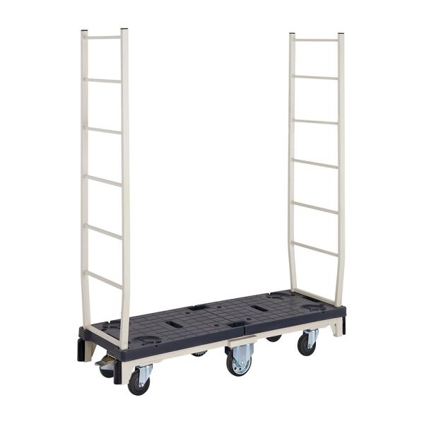 フラット型と組み替えることができます。安価で耐久性に優れるゴム車を採用。積載物が取り出しやすいスライド棚仕様です。