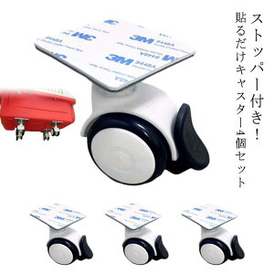 ストッパー付き!貼るだけキャスター4個セットお手持ちの家具を手軽にキャスター付き家具に変えられます。付属の強力両面テープで貼るだけでキャスターが付けられます。お持ちの家具、ソファ、カラーボックス、キャビネット、テーブル