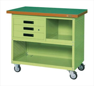 【完成品】 《商品説明》●大きな工具も収納できる大型ワゴン●グリーン購入法適合商品《商品スペック》●外寸:W1000×D600×H880mm●カラー:サカエグリーン●均等耐荷重:300kg●質量:68kg●天板厚:38mm●天板種類:...