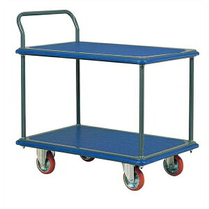 二段台車 一度にたくさんの荷物が運べます。国産品です。□荷台寸法(mm):915x615□自重(kg):40□最大積載荷重(kg):300□ハンドル高さ(mm):950□ハンドルタイプ:2段台車。