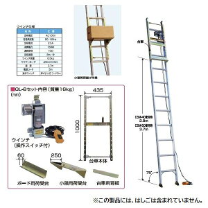 ●型式 GL-8●適応1連はしご型式 CSM-40、CSM-50●全長(正面幅mm) 435●全長(高さmm) 1000●荷台寸法(mm) ボード用60、小箱用250●質量(kg) 16●最大使用質量(kg) 60●鋼製 《特長》●...