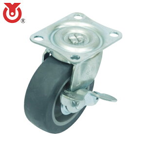 汎用キャスター用ゴム車輪、プレート式ストッパー付き自在車キャスター。75mm径 2個セット(フリーストッパー付き)ゴム製。