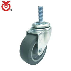 ユーエイキャスターメーカーお問い合わせ:06-6747-5618【特長】●走行性・耐荷重を備えた標準的な小型キャスターです。軽量物運搬用のワゴンやラックに最適です。●床面に跡が付きにくい材質です。●床面を汚しにくいエラストマー車輪を