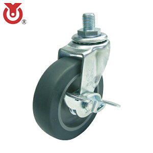ユーエイキャスターメーカーお問い合わせ:06-6747-5618【商品説明】【特長】●標準的な小型キャスターです。軽量物運搬用のワゴンやラックなどに最適です。●床面に跡が付きにくい材質です。●床面を汚しにくいエラストマー車輪を使用し