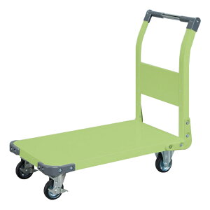 樹脂製で丈夫!グリーンの平台車。天板は幅415×長さ615mmで、耐荷重は100kgです。ナイロン性のキャスターで重量物でも軽く運べます。・メーカー品名:TRUSCO 連結式ルートバン 615X415 ナイロン車輪 4輪自在 ストッパ...