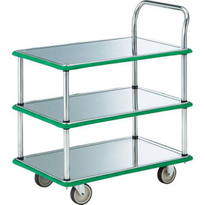 【特長】■実用性・強度・軽量性を究極まで追い求めつつ、気高さを持った美しいフォルムの台車です。■ものに合わせて積載量を選べる多段台車の三段式です。■高さが低いものを数多く置く作業に便利です。■荷台は肉抜きのクロスメッ