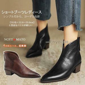 深めの足入れに女性らしさを追求した個性漂わせるショートブーツ。 太めのチャンキーヒールで安定感も抜群で歩きやすい。低反発クッションで柔らかな履き心地。 サイドファスナーデザインになっているので着脱も簡単です...