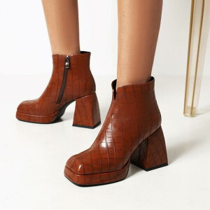 ・カテゴリ: ファッションブーツ・アッパー素材: 人工PU・ソール素材: ゴム・性別: レディース・スタイル: パンク・つま先形状: ラウンドトゥ・ヒール形状: スクエアヒール・ヒールの高さ: 8cm以上・デザイン要素: プラットフォ...