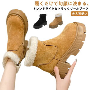 ムートンブーツ ショートブーツ 裏起毛 冬 シューズ 靴 ブーツ 防寒ブーツ レディースブーツ ペタンコ 走れる ローヒール 厚底 ムートンブーツ 裏ボア ファー付き防寒 歩きやすい ファスナー スニーカー...