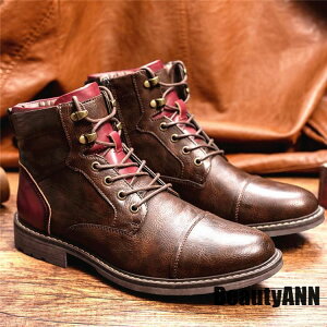サイドジッパー ブーツメンズ ハイカット 秋 冬 レザー 合皮 ショートブーツ ワークブーツ【サイズ】24.0cm,24.5cm,25.0cm,25.5cm,26.0cm,26.5cm,27.0cm,...