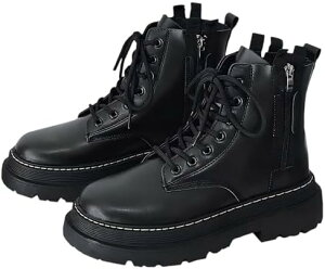 2bjovlk6wj商品コード2bjsodngi9商品名クロス ショートブーツ メンズ 厚底 歩きやすい 編み上げ サイドファスナー PU レザー 合皮 履きやすい ハイカット レースアップ ジップ ワークブーツ...