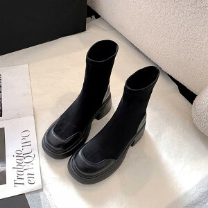 ■商品の特徴ショートブーツ ショート丈 ミドルヒール 合皮 秋冬 ブラック 大人 オルチャン 疲れない おしゃれ 歩きやすい毎年大人気のソックスブーツ登場。 ニット素材で足当たりも良く、足が痛くなりにくいのも嬉しいポイント...