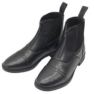 コスパ重視!乗馬ビギナーにもおすすめ!フロントファスナーで着脱スムーズ、お手ごろ価格なのに質感の高い合皮製ショートブーツ 乗馬 馬術 乗馬用品 馬具 乗馬用ブーツ ショートブーツ オールシーズン ブラック...