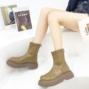 メンズライクなショート丈厚底ブーツトレンドライクなデザインがたまらない【商品名】 厚底ミディアム丈ブーツ(HK-1606)【サイズ】23cm/23.5cm / 24cm / 24.5cm/ 25cm・チューブ高 16.5cm・ソール高...