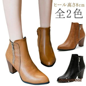 ショートブーツ アンクルブーツ ハイヒール レディース ブーティ 太ヒール サイドファ