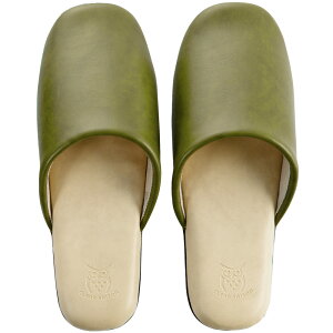 薄手なシルエットとスクエアトウで、見た目にもスタイリッシュなレザー(合皮)スリッパです。 甲とインソール(中板)生地には、鉛やカドミウムを使用しない環境に優しいPVCレザーを使用。 銀(Ag)系抗菌剤を練り込んであり...