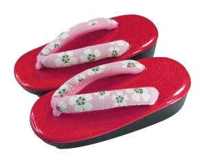 子供着物七五三 女児草履3歳16cm・5歳18cm前後用 赤色合皮レザーにラメ入り小判型台座に花柄鼻緒 女の子用履物キッズ和装小物 ●商品説明 小判型のレザーにラメ入り台座に太目の鼻緒で履きやすい草履...