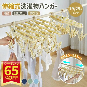 商品仕様商品名:伸縮式 洗濯ハンガー;ピンチ:14個;19個;29個;材質:ポリプロピレン。伸縮する便利なピンチハンガー!最大113cm(29クリップ)まで伸ばすことが可能。スペースに合わせて伸ばしたり縮めたり、収納時もコンパクトにまとま