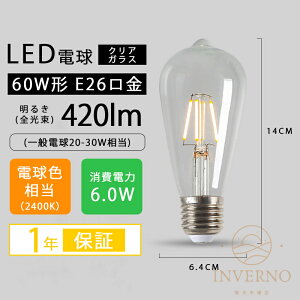 [ 製品仕様 ] 商品名:LED電球 口金:E26 サイズ:E26…約Φ64×140mm 照射角度:360° 演色性:Ra85以上 色温度:電球色 2400K 全光束:420lm 定格電圧(周波数):...