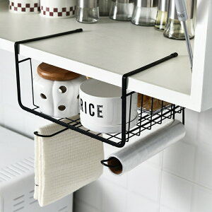 ラップや布巾などの小物のストックに便利な吊り下げ収納ラック。 キッチンの吊り下げ戸棚に差し込むだけの簡単設置♪ 【サイズについて】 画像をご参照ください。 【カラーについて】 生産ロットにより柄の出方や色の濃淡が異なる場合