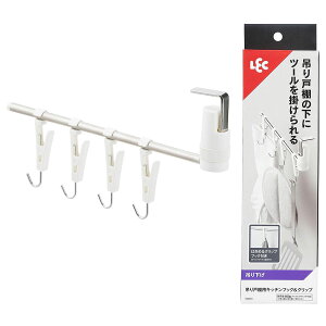 様々なツールをまとめて収納できる、吊り戸棚用キッチンツールフック。調節ネジで棚板を挟み込むだけで取り付けられる。フックにクリップが付いた便利な2WAY仕様のフックが4本付属。フックは取り外し可能。アーム部分は動かせるので...
