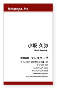 す。 真中に白抜きを配置した名刺です。 10枚または100枚単位で名刺印刷を承ります。ビジネス用名刺、プライベート用名刺、ショップカードなどにお勧めです。 ■ 名刺サイ