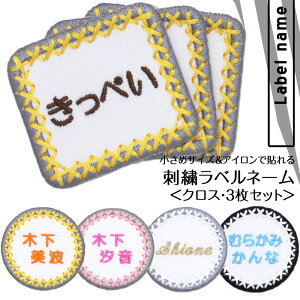 商品情報 商品名 刺繍ラベルネーム クロス 3枚セット デザイン グレー、イエロー、ピンク、ブラック サイズ 丸:直径 4.2cm 四角:縦 3.7cm × 横 4.2cm 文字フォント 丸ゴシック 筆記体(ローマ字)...