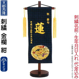 サイズ:間口18×奥行10×高さ40(cm) 五月人形 名前旗 座敷旗 タペストリー 慶祝 干支 特小 紺 縮緬 スタンド付 金刺繍 生年月日 名前入れ代金込み 名入れ・家紋入れ・生年月日入れ等、対象商品をご注文の場合...