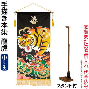 優良店龍虎 小 スタンド付 家紋または名入れ代込み商品番号:wtk-tap-rks-st【2026年度新作名前旗】吉祥柄の龍虎を配した縁起の良いタ...