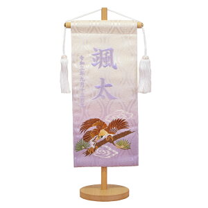 小サイズをお求めの方はこちらをクリック 大サイズをお求めの方はこちらをクリック 端午の節句用タペストリー。 贈り物に喜ばれる飾り台とセットとなった名入り掛け軸です。 大切なお子様のお名前を華やかに彩る名入掛軸にモダンかつス