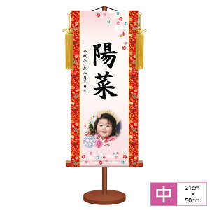 《節句名入掛軸》◆小サイズ:高さ約40cm×間口約17cm◆本紙:新絹本◆軸先:合成樹脂◆専用スタンド付(合成樹脂)◆黄金飾り房付◆化粧箱収納