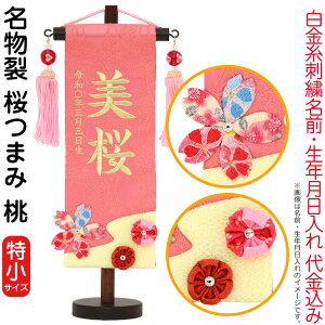 サイズ:幅13×高さ30(cm)節句人形優良店名物裂(特小)桜つまみ 桃 水中花桃房 スタンド付 白金糸刺繍 生年月日 名前入れ代込み商品番号:mk-name-3-660-609【2026年度新作】 ...