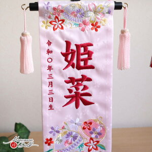 商品説明 お雛様の横に飾れる名前旗です。 国産織物使用、日本製の生地に1点1点丁寧に刺繍いたします。 刺繍名入れは書き順通り、祝節句・生年月日入り、お子様だけのオンリーワンです。 出産祝い、命名札代わりとしても好評をいただい