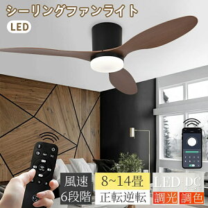 シーリングファンライト LED おしゃれ 調光調色 6畳 8畳 12畳 14畳 直付け 吹き抜け 照明器具 天井照明 静音 DCモーター リモコン付 LEDシーリングライト 涼 3羽根 扇風機 6段階風量調節...