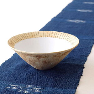 深鉢 優しく手になじむ シンプルな自然体の器 一つ一つ手でラインを掻き 上からサビを塗って ラインを引き立たせた 直径が19センチの深鉢 盛り付けの部分はマットな白釉で ツルツルサラサラに仕上げ 胴の部分にサビをあしらった 素朴な風