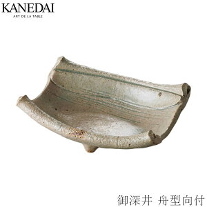 【御深井 舟型向付】 TRAD STYLE 土の風合いをいかした表情、やわらかで大胆なフォルム、磁器にはない味わいが感じられる土ものの醍醐味です。 窯によって焼き上がりが微妙に変化する、窯変具合も魅力のひとつ。 ─┘─┘─┘─┘─┘─┘