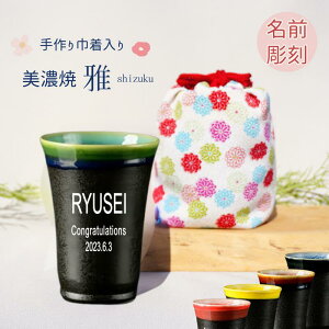 カラーカップ:赤、黄、緑、黒、茶 巾着(生地は同一です):赤紐、黄紐、紫紐内容量・サイズカップ:400ml (口径約9cm×高さ約12.5cm) 巾着:素材カップ:磁器 巾着名入れ・刻印サービス彫刻あり地域ブランド(陶磁器)カップ:美...