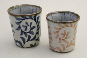古染付の手法で描かれた唐草模様が落ち着いた風情を演出しています。 伝統的な素材と色合いはいつまでも飽きのこない永く使って頂ける器です。 サイズは大(青色)と小(紅色)があり、上品な手造り調の形状は贈答にも喜ばれます。 商品