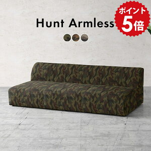 Hunt アームレス 迷彩サイズ約幅1800 奥行910 高さ545 mm座面高さ:280 mm梱包サイズ:約幅1950 奥行970 高さ590 mm材質[本体]Sバネ、ウレタンフォーム [張地]綿100%。