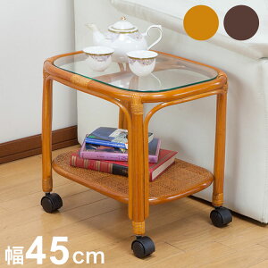 便利なキャスター付き天然籐テーブル。ソファ横やベッド横に置けば、ちょっとした物を置くときに便利。下段は小物が置けます。天板には厚手の強化ガラスを使用。一部組立式 ※キャスターのみ取り付け■商品サイズ(...