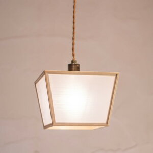 日本杉/ワーロン(薄無地+カラー)/合板(天板)/金属BSメッキ(ソケットカバー)金茶撚線コード フレンジカバー付※ハンドメイドですので、同じ商品でもひとつひとつの風合いが異なります。手づくりの味わいとしてご理解下さい。※表示ワット数