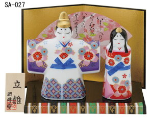 ◆「3月3日のひな祭り」縁起物の雛人形◆ 女の子の健やかな成長と、末永い幸福を祈って飾る縁起物の雛人形です。 陶製の雛人形は価格もサイズも手頃で、心を込めた贈り物にも自家用にも好適です。商品詳細サイズSA-027:男雛/高 9.7cm・女