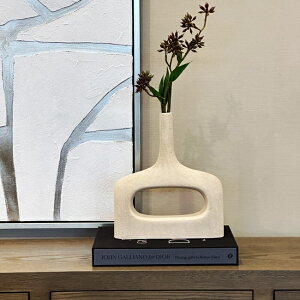 芸術作品のようなフラワーベース。 滑らかな曲線とオフホワイトがナチュラルでありながら、細かく施された凹凸も模様が高級感を与えてくれます。 花や枝物を一輪挿ししてシンプル飾ってたり、形違いのベースとオブジェとして飾るのも