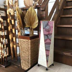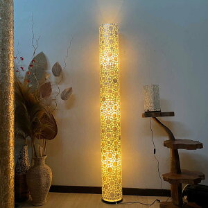 ・商品詳細 円柱形のスタンドライトです。 バリの職人が、1つ1つ丁寧に貝殻を編み込みデザイン風に貼り合わせた手間のかかった逸品! 昼間はアジアンテイストのオブジェ、点灯時はシェード越しに拡がる明かりが、雰囲気の良い空間を